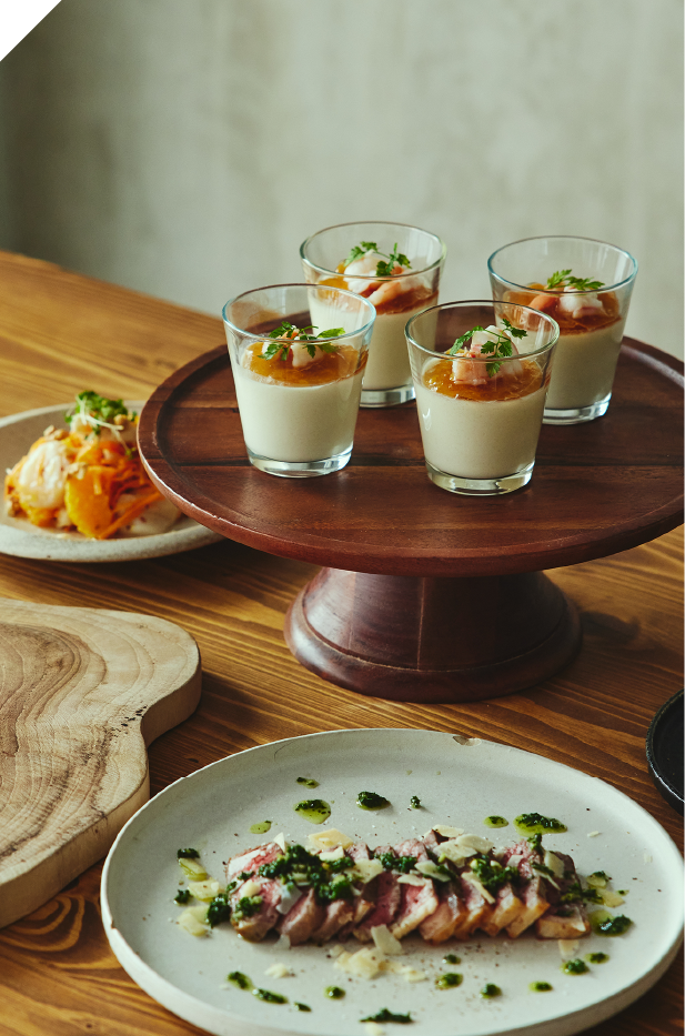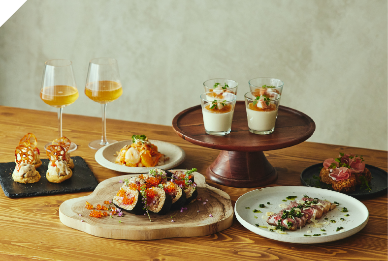 OTAでは基本となるメニューがありながらも、お客様のテーマや食べ物・お酒の好みに合わせて、 オリジナルラインナップで作ることも可能です。