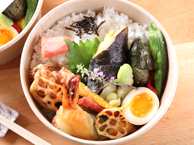 季節のお魚やお野菜をふんだんにつかった色鮮やかなお弁当。