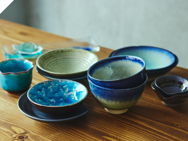 普段は百貨店やデパートで売られているようなお皿でも、季節の入れ変わりなどで窯元に戻ってきたり、制作時に気泡が入ったり、色が少し乱れてしまったり、私たちからは"あじがある”と感じるようなお皿を、各地から集めて、通常よりも安価で販売をさせて頂いております。